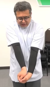 肩回し体操。1日2セットが目安